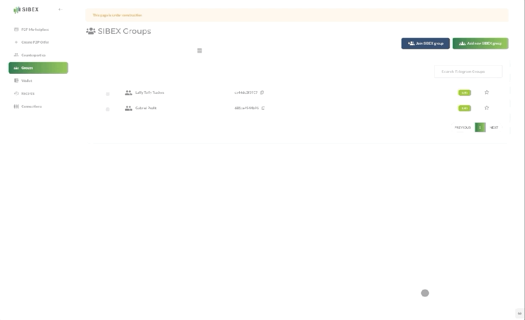 The Group Trading Feature on SIBEX allows anyone to pseudonymously create personal trading groups and manage their own OTC group as an exchange. Users have the option to join an existing group of traders. Alternatively, they can also create a new group and invite up to 50 members, keeping trades safe and decentralized in a close-knit private community.